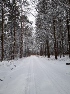 Den Preis für die kreativste Laufstrecke gewinne ich heute nicht. Mein Weg führt mich direkt in den nahegelegenen Wald hinein, dort werde ich zwei Schleifen laufen und dann nach Hause zurückkehren. Mit Tuaq möchte ich Ablenkungen soweit wie möglich meiden und daher keine der angrenzenden Ortschaften passieren. In fast allen gibt Bauernhöfe, mit Weiden und oft freilaufenden Hühnern, die den Jagdtrieb der Huskies wecken. Mir ist wichtig das er sich heute auf mich konzentriert um langfristig, unser Zusammenspiel, zu verbessern.